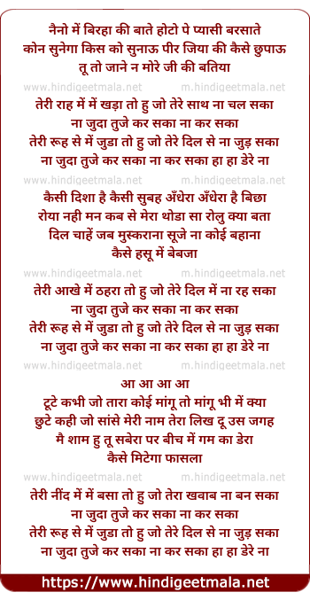 Lyrics of Naino Mein Birha Ki Bate - नैनो में बिरहा की बातें