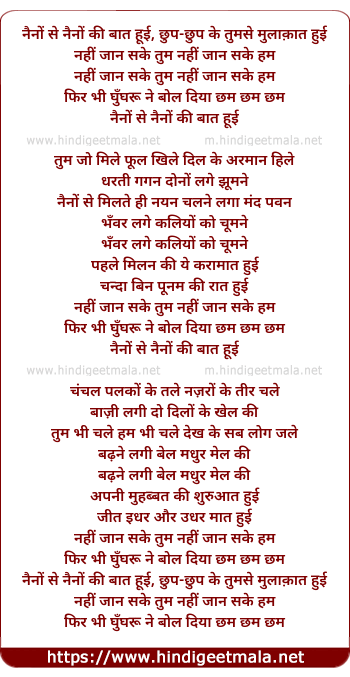 Lyrics of Naino Se Naino ,Kee Bat Huyee - नैनों से नैनों ,की बात हूई
