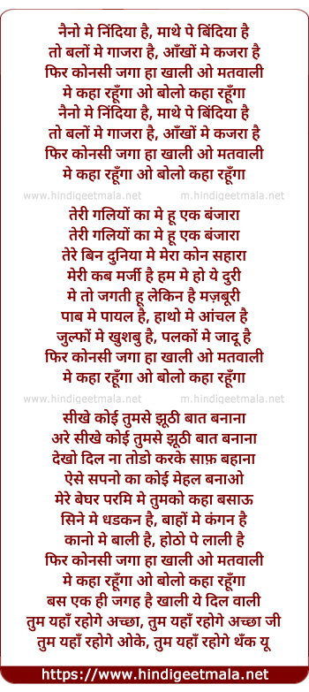 Lyrics of Nainon Me Nindiya Hai Mathe Pe Bindia Hai - नैनो में निंदिया है माथे पे बिंदिया है
