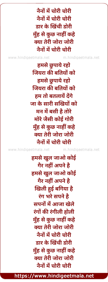 Lyrics of Nainon Mein Chori Chori - नैनों में चोरी चोरी