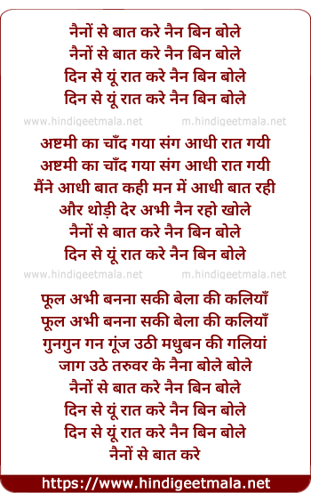 Lyrics of Nainon Se Baat Karein - नैनों से बात करे नैन बिन बोले