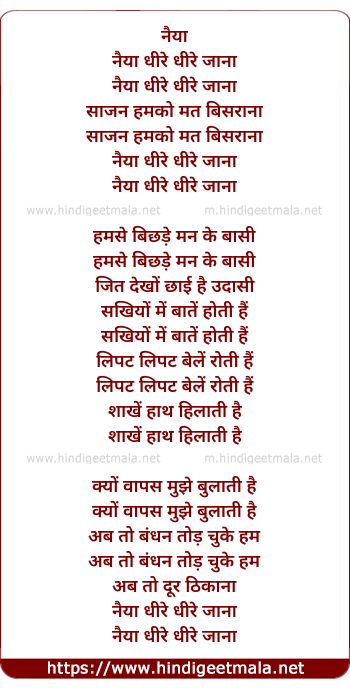 Lyrics of Naiya Dhire Dhire Jaye - नैया