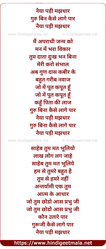 Lyrics of Naiya Padi Majhdar Guru Bina - नैया पड़ी मझधार