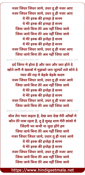 Lyrics of Najar Jidhar Jidhar Jaaye - नजर जिधर जिधर जाये