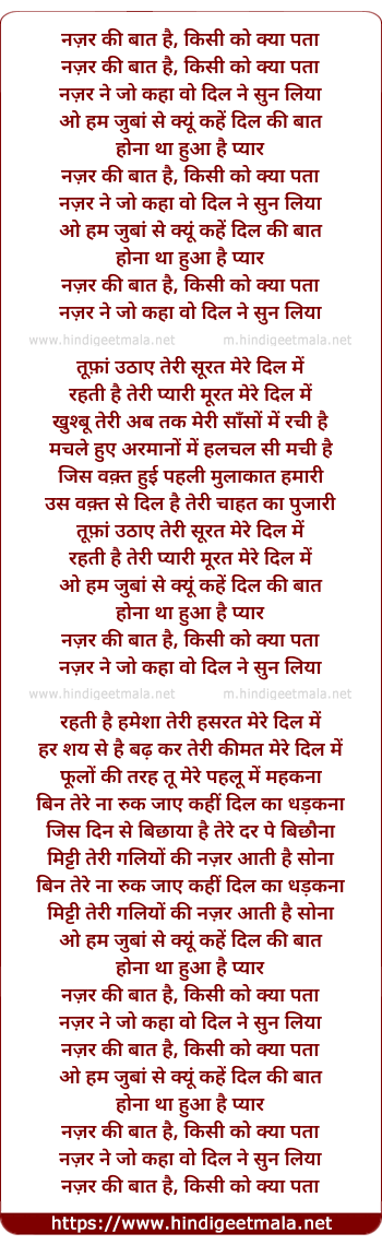 Lyrics of Najar Kee ,Bat Hai - नज़र की ,बात है
