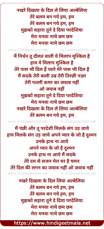 Lyrics of Nakhre Dikhla Ke Le Liya - नखरे दिखला के दिल ले लिया