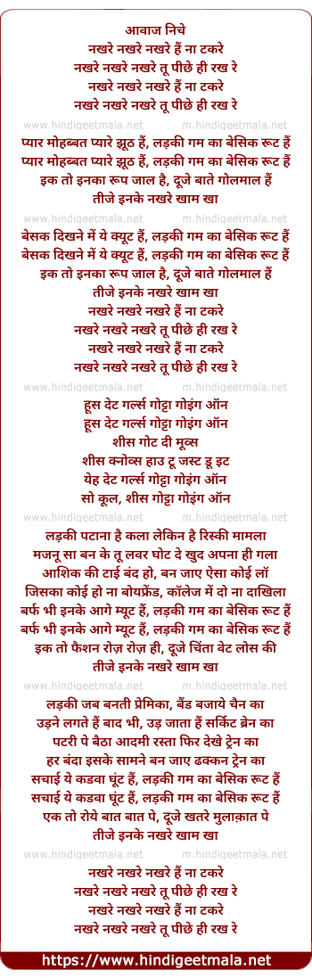 Lyrics of Nakhre Nakhre Nakhre Hai Naa Takre - नखरे नखरे नखरे है ना टकरे