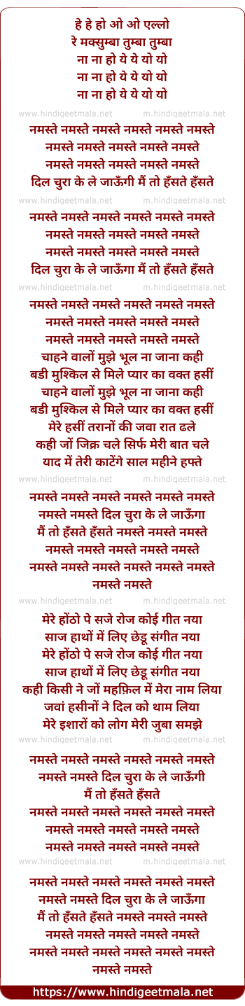 Lyrics of Namaste Namaste Namaste - नमस्ते नमस्ते नमस्ते