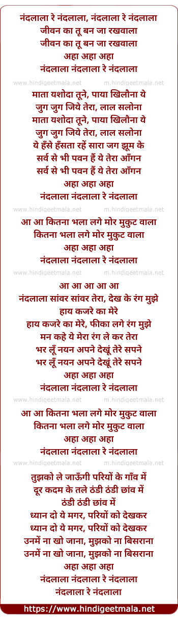 Lyrics of Nandlala Re - नंदलाला रे