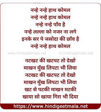 Lyrics of Nanhe Lala Ko Nazar Na Lage - नन्हे लला को नजर ना लगे