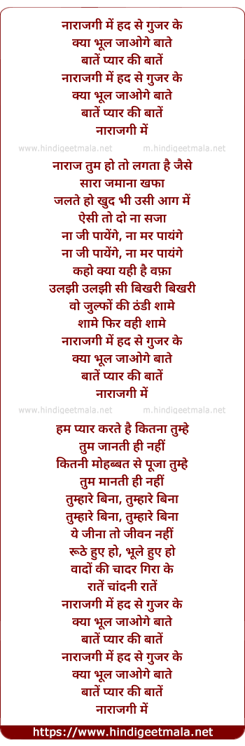 Lyrics of Narazgi Me Hadd Se Gujar Ke - नाराजगी में हद से गुजर के