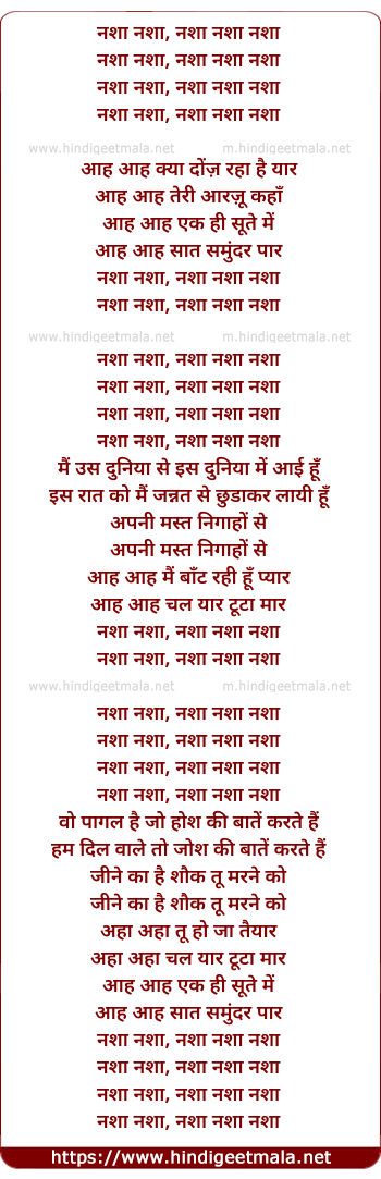 Lyrics of Nasha Nasha (Ahankaar) - नशा नशा, नशा नशा नशा