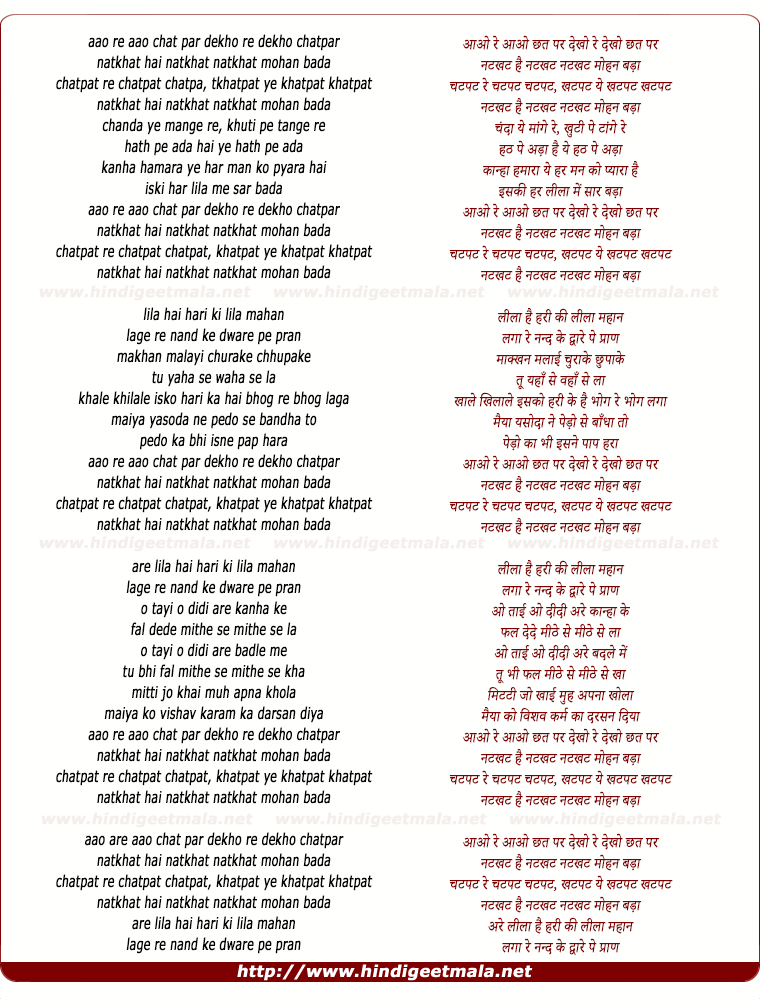 Lyrics of Natkhat Hai Natkhat Natkhat Mohan Bada - नटखट है नटखट नटखट मोहन बड़ा