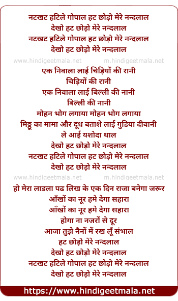 Lyrics of Natkhat Hatile Gopal Hat Chhodo - नटखट हटिले गोपाल हट छोड़ो