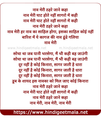 Lyrics of Naau Meri There Jane Kahan - नाव मेरी ठहरे जाने कहाँ