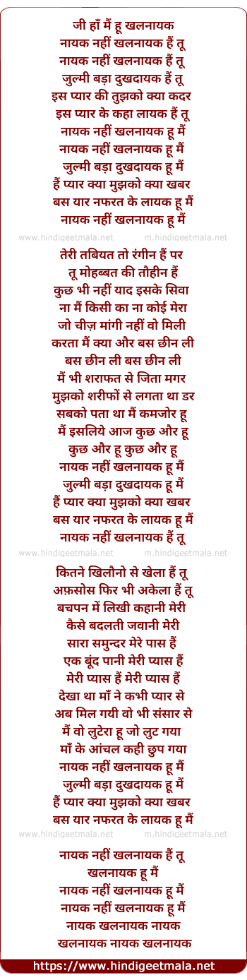 Lyrics of Nayak Nahi Khalnayak Hun Mai - नायक नहीं खलनायक हूँ मैं