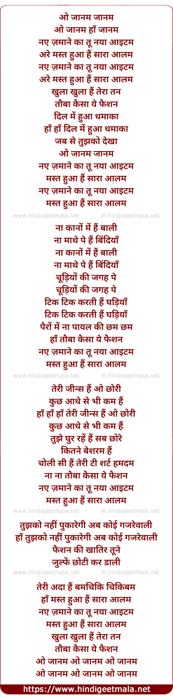Lyrics of Naye Zamane Ka - ओ जानम जानम