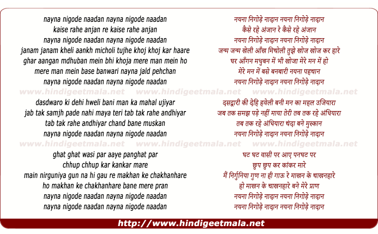 Lyrics of Nayna Nigode Naadan - नैना निगोड़े नादान