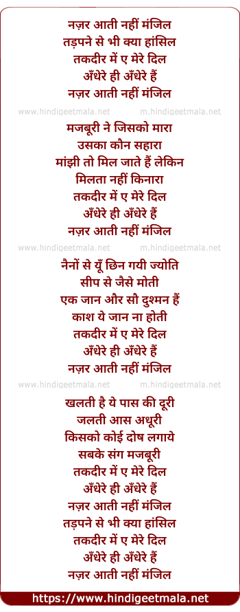 Lyrics of Nazar Aati Nahi Manzil - नज़र आती नहीं मंजिल