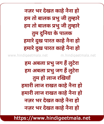 Lyrics of Nazar Bhar Dekhat Kaahe - नज़र भर देखत काहे