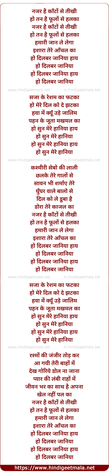 Lyrics of Nazar Hai Kanto Se Teekhi - नजर है काँटों से तीखी