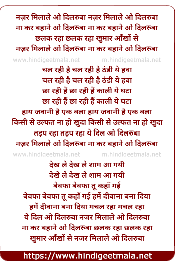 Lyrics of Nazar Mila Le O Dilruba, Na Kar Bahane - नज़र मिलाले ओ दिलरुबा,ना कर बहाने