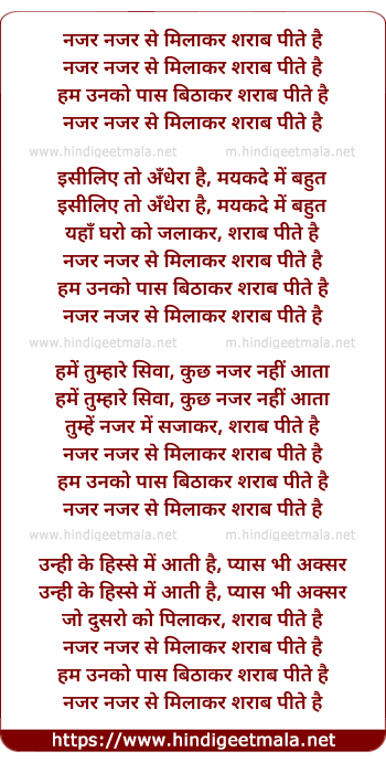 Lyrics of Nazar Nazar Se Milakar - नजर नजर से मिलाकर