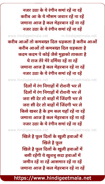 Lyrics of Nazar Utha Ke Yeh Rangeen Sama - नजर उठा के ये रंगीन समां