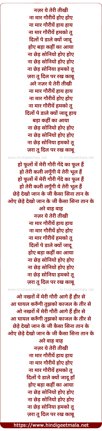Lyrics of Nazar Yeh Teri - नज़र ये तेरी