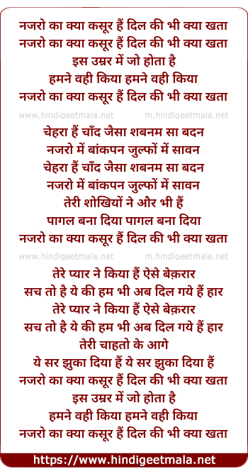 Lyrics of Nazro Ka Kya Kasoor Hai - नजरो का क्या कसूर हैं