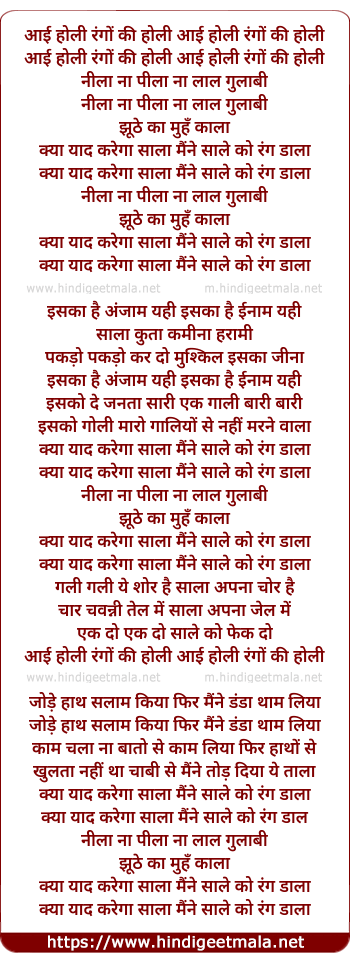 Lyrics of Neela Na Peela Na Laal Gubaabi - नीला ना पीला ना लाल गुलाबी