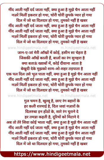 nazare mili ikarar ho gaya, chori chori chhupake pyar ho gaya