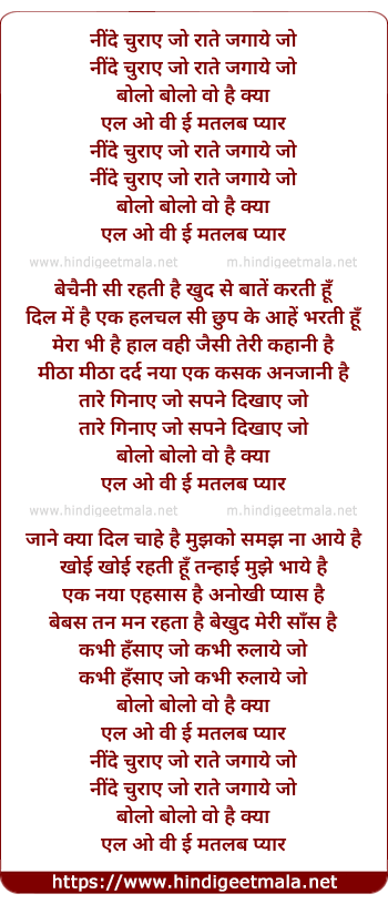 Lyrics of Neende Churaye Jo Raate Jagaye Jo - नींदे चुराए जो राते जगाये जो