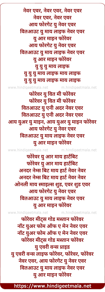 Poetic Translation - Lyrics of Never Ever (Remix) - नेवर एवर, नेवर एवर, नेवर एवर