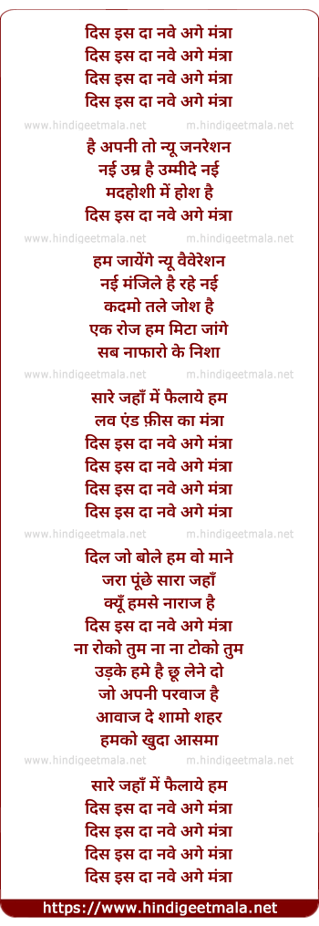 Lyrics of New Age Mantra (2) - दिस इस दा नवे अगे मंत्रा