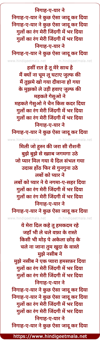 Lyrics of Nigaah E Yaar Kuch Aisa Jaadu Kar Diya - निगाह ए यार कुछ ऐसा जादू कर दिया