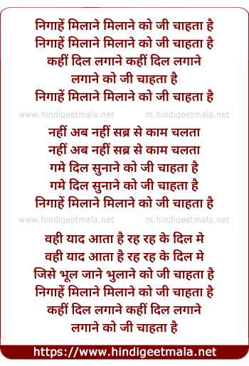 Lyrics of Nigahe Milane Ko Ji Chahta Hai - निगाहें मिलाने मिलाने को जी चाहता है