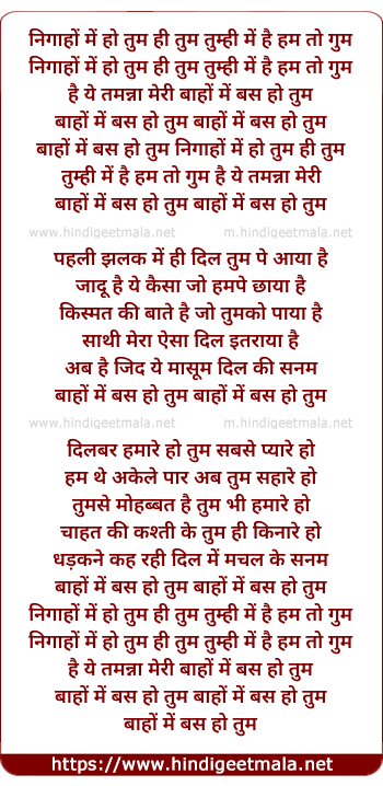 nigaho me tum hi tum tumhi me hai hum to gum
