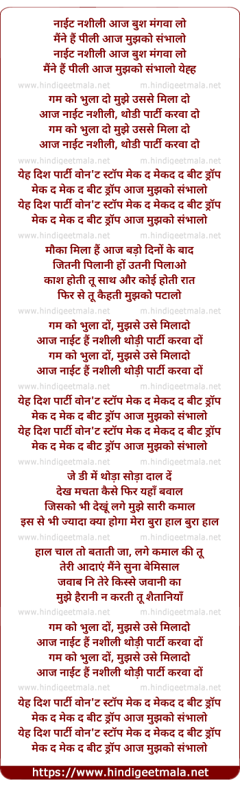 Lyrics of Night Nasheeli - नाईट नशीली