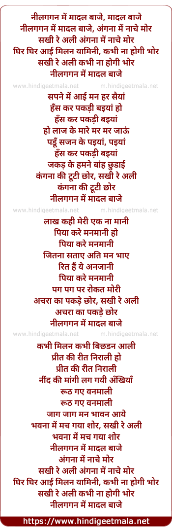 Lyrics of Nilgagan Me Baadal Baaje Angana - नीलगगन में मादल बाजे अंगना