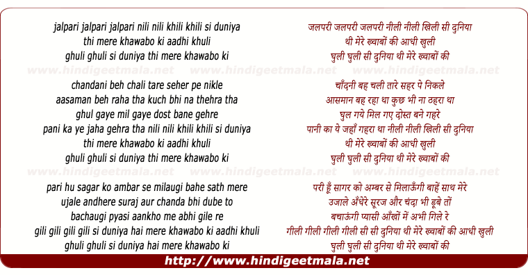gili gili gili gili si duniya hai mere khawabo ki aadhi khuli
