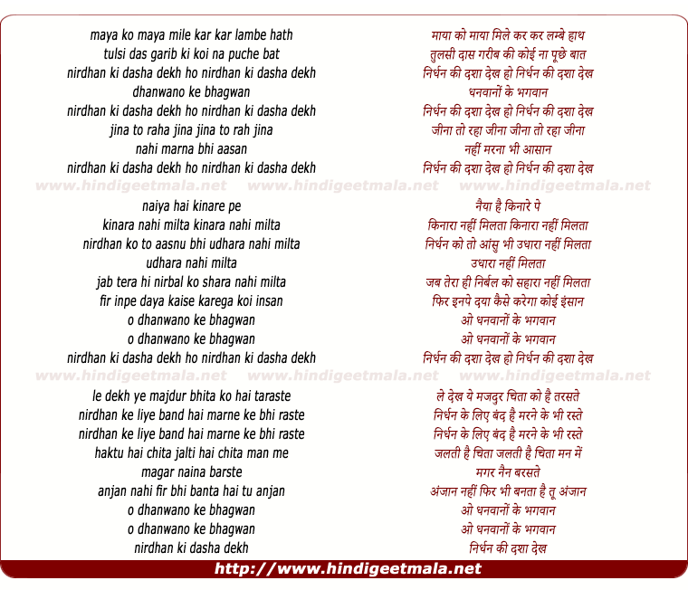 Lyrics of Nirdhan Ki Dasha - निर्धन की दशा