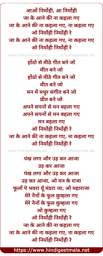 Lyrics of Nirmohi Re Ja Ke Aane Ki Na - निर्मोही रे जा के आने की ना