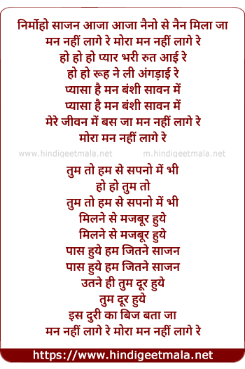 Lyrics of Nirmohi Saajan Aaja Aaja