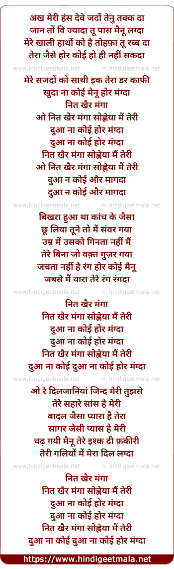 Lyrics of Nit Khair Manga - नित खैर माँगा