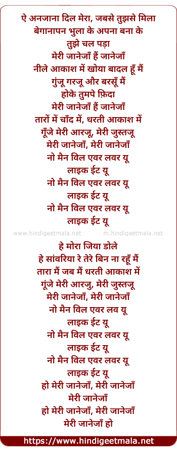 Lyrics of No Man Will Ever Love You - ऐ अनजाना दिल मेरा, जबसे तुझसे मिला