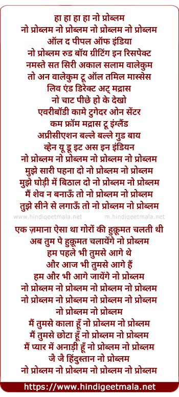 Lyrics of No Problem - नो प्रोब्लम