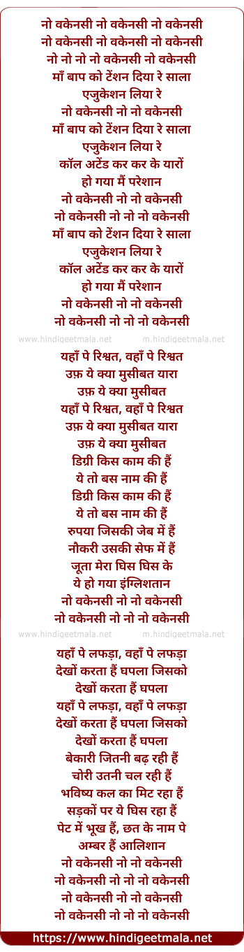 Lyrics of No Vacancy - नो वकेनसी नो वकेनसी नो वकेनसी