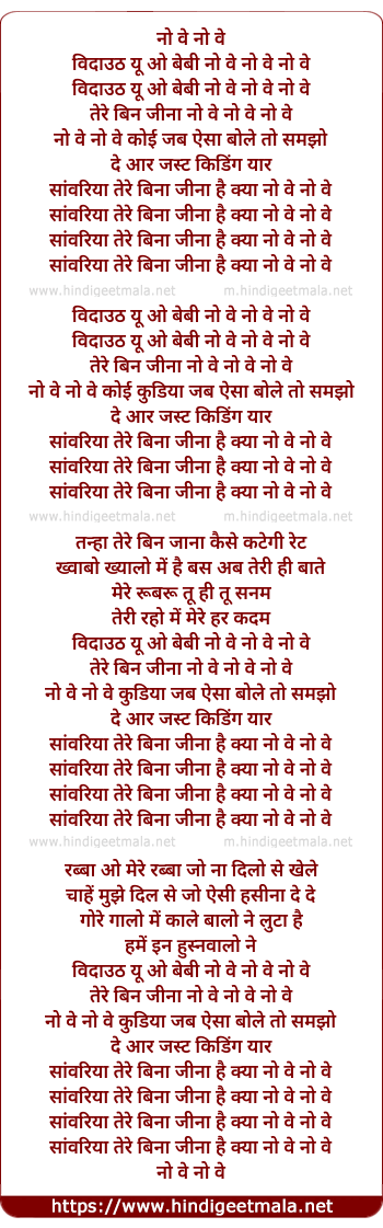 Lyrics of No Way No Way Kudiyaa Jab Aisaa Bole To Samjho - नो वे नो वे कुड़िया जब ऐसा बोले तो समझो