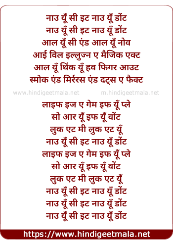 Lyrics of Now You See, Now You Don't - नाउ यूँ सी, नाउ यूँ डोंट